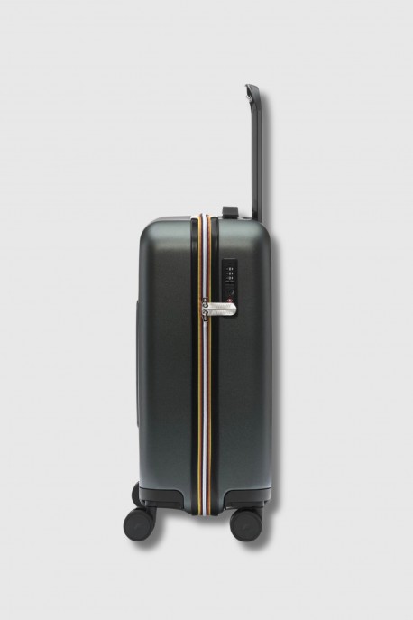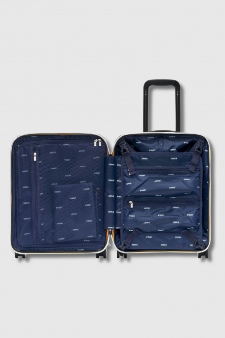Cette valise rigide Eudoxie kaki est signée K-Way. Compacte et pratique, elle est idéale comme bagage cabine pour de courts séjours. Sa coque en polycarbonate garantit solidité et légèreté, tandis que ses quatre roues pivotantes à 360° assurent une grande maniabilité. Elle est équipée d’un cadenas à combinaison TSA, d’un intérieur fonctionnel avec panneau séparateur amovible et poche zippée, ainsi que d’un sac à linge à cordon. Le logo K-Way en relief ton sur ton apporte une touche distinctive.