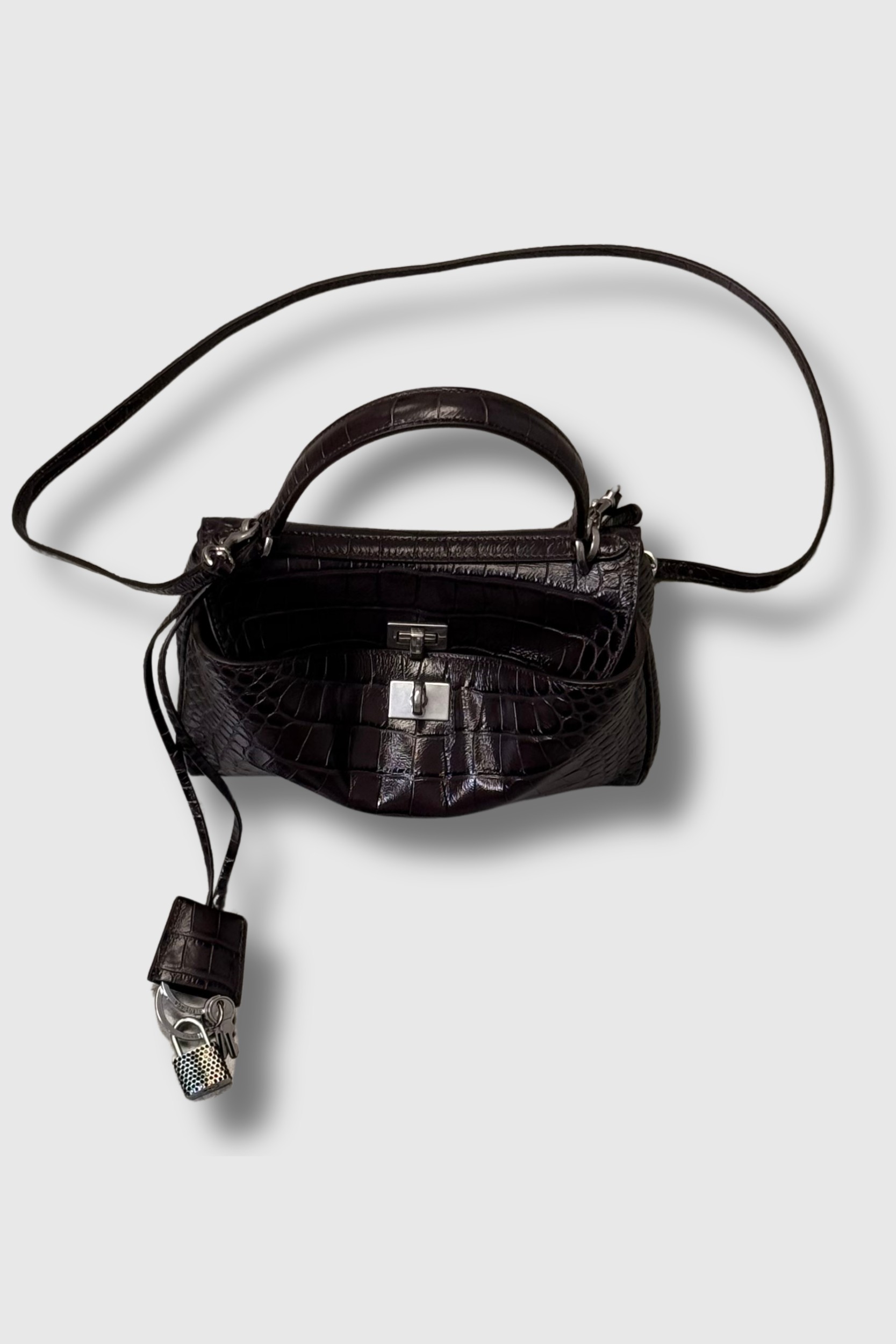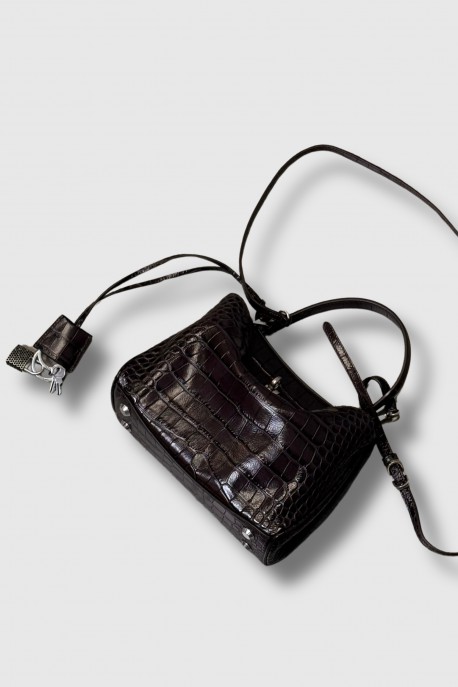 Le Mini Rodéo séduit par son allure sophistiquée et son format compact, parfait pour le quotidien. Réalisé en cuir embossé effet croco, il se distingue par ses reflets profonds et sa texture luxueuse. Sa silhouette structurée, rehaussée d’un cadenas argenté emblématique, incarne un équilibre entre élégance et fonctionnalité. Porté à la main ou en bandoulière, il accompagne toutes les tenues avec une touche de caractère.