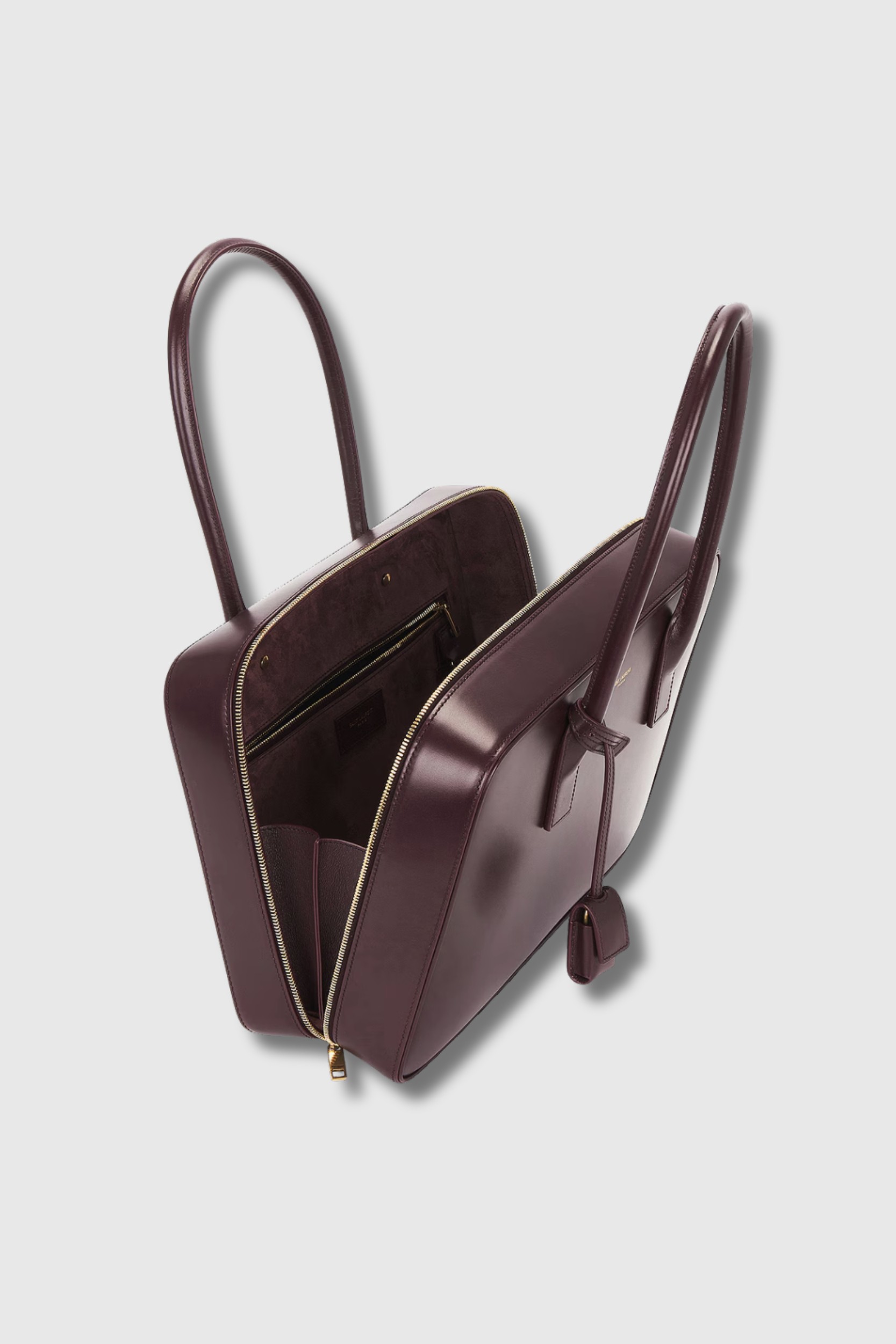 Un sac structuré à l’allure executive, revisité dans une teinte “Hot Wine” élégante. Fabriqué en cuir lisse type box leather, il adopte une silhouette de serviette rigide avec ouverture large grâce à un double zip à soufflet — pour un accès facile à vos essentiels. L’intérieur est doublé de cuir et comporte une poche zippée et une poche plate. Anses tubulaires en cuir ; bandoulière ajustable et détachable pour le porter épaule ou crossbody. Les détails comme le cadenas signature viennent souligner le style raffiné de la maison.