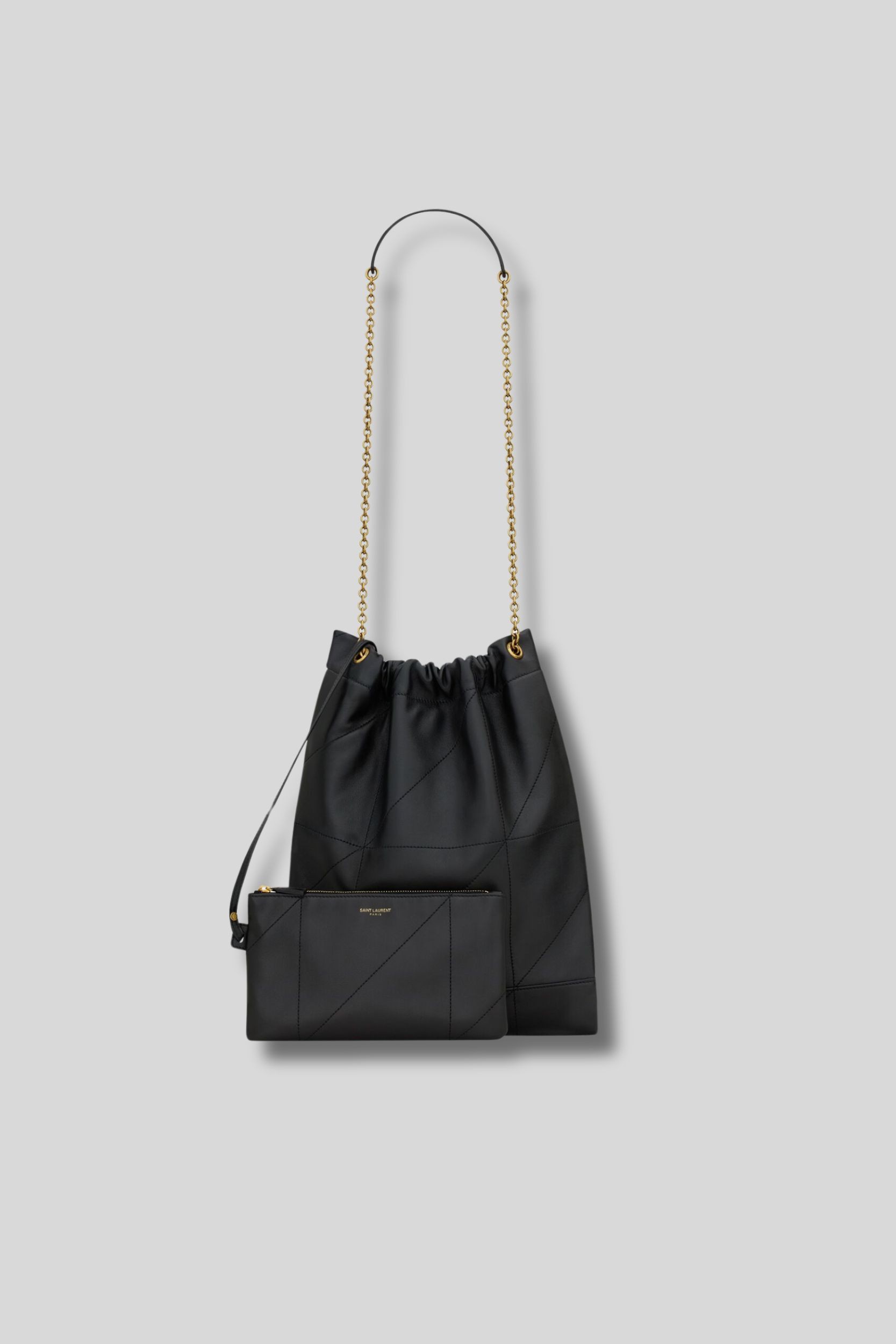 Ce sac Jamie 4.3 en cuir nappa souple noir est signé Saint Laurent. Il présente des surpiqûres matelassées au motif "carré rive gauche". Léger et spacieux, il dispose d'une chaîne ajustable pour un porté sur mesure. Il est également doté d'une pochette intérieure zippée amovible.