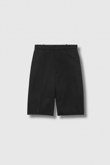 Le Bermuda en gabardine légère signé Balenciaga revisite le tailoring avec une modernité affirmée. Confectionné en laine barathea, il se distingue par sa coupe habillée et sa taille mi-haute, dessinant une silhouette structurée et contemporaine.