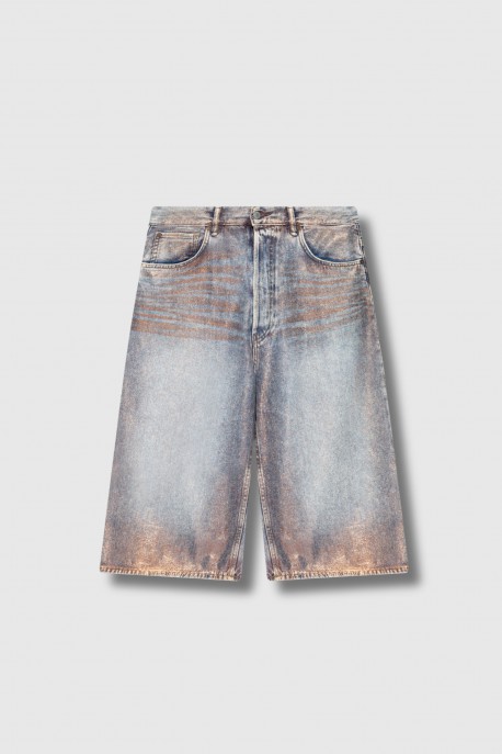 Bermuda en denim bleu et détails rose gold
