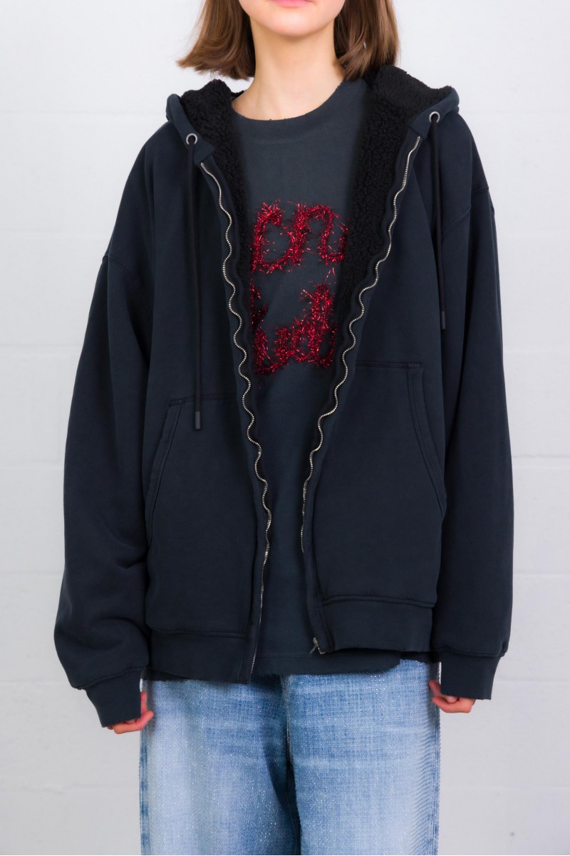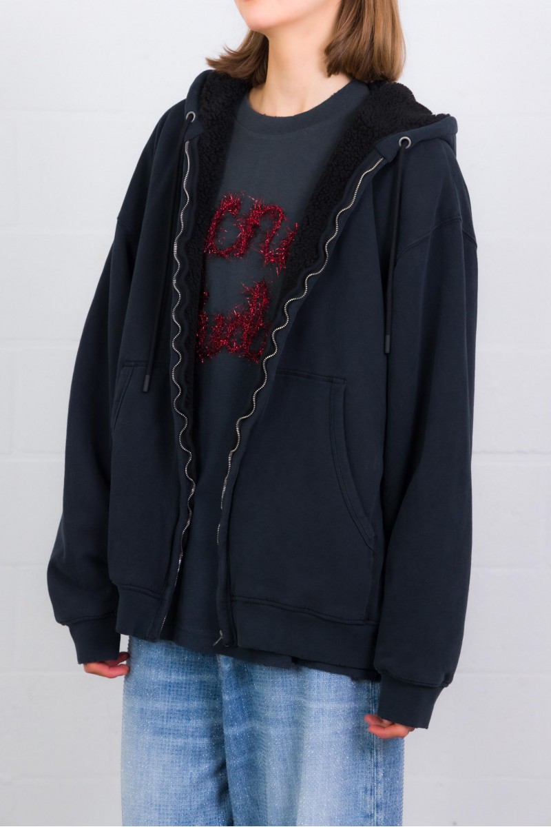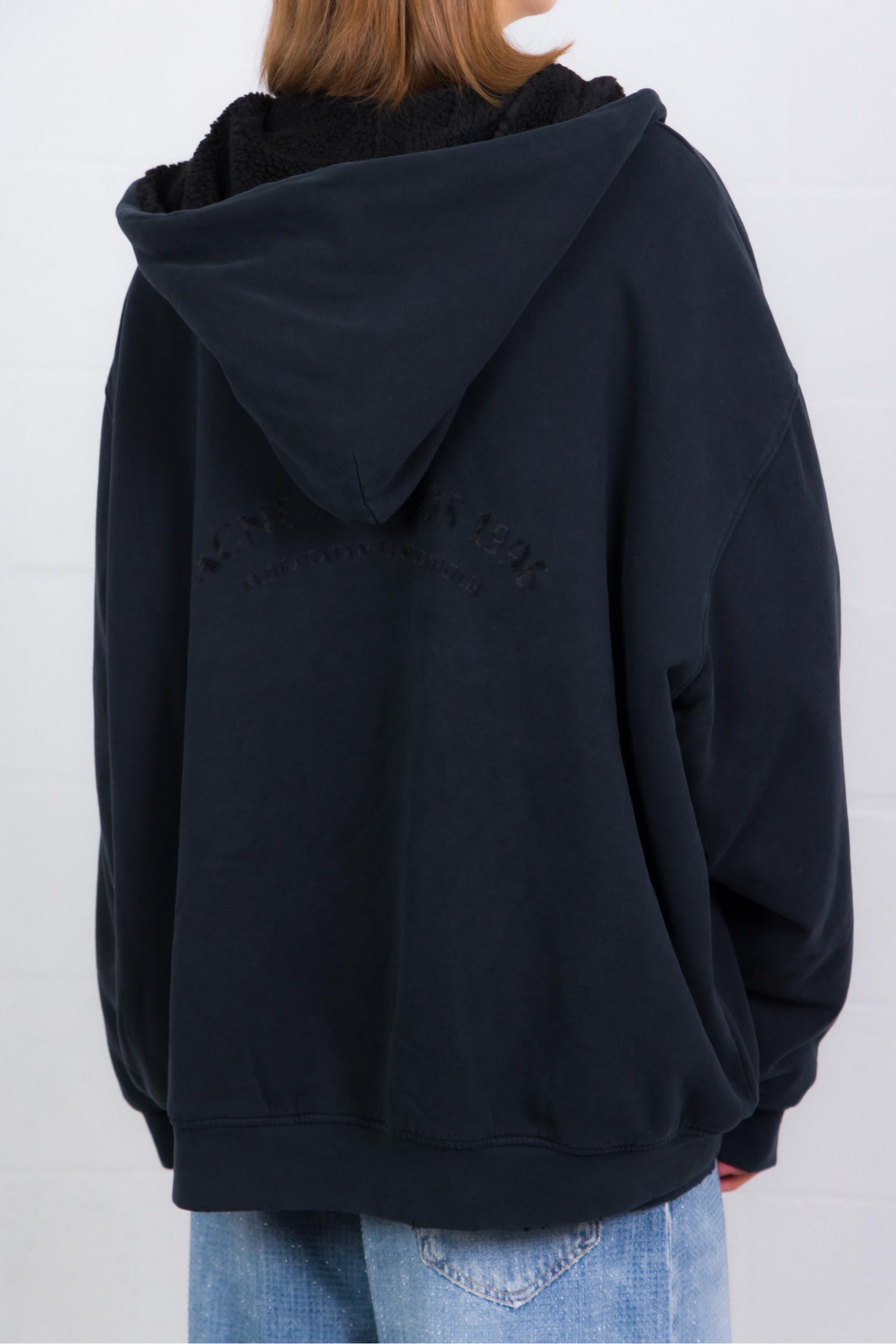Ce sweat à capuche zippé noir signé Acne Studios séduit par son aspect vieilli et vintage. Sa coupe décontractée et sa doublure intérieure douce en font une pièce à la fois stylée et confortable.