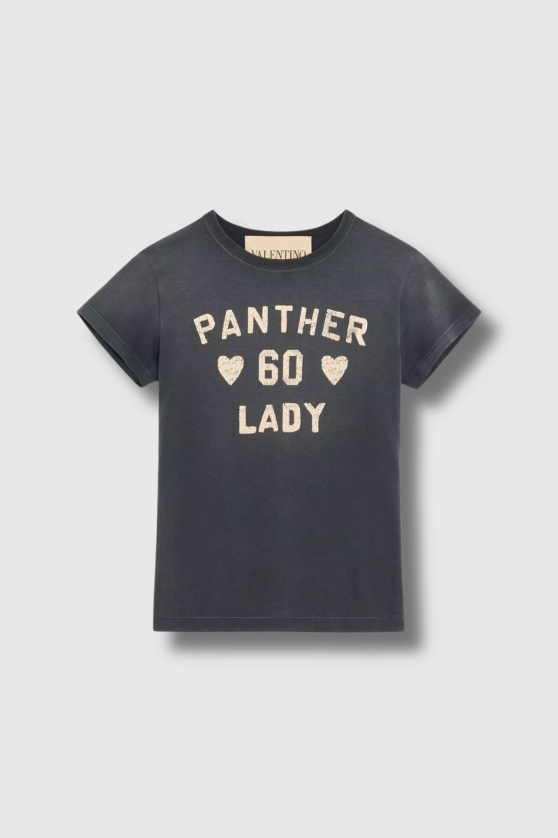 Ce T-shirt Panther noir signé Valentino Garavani séduit par son allure graphique et contemporaine. Confectionné en jersey de coton 100 %, il offre un toucher doux et un confort optimal au porté. Son imprimé Panther Lady apporte une touche audacieuse et iconique, contrastant élégamment avec la teinte ciel du fond. Une pièce expressive et moderne, idéale pour dynamiser une silhouette casual avec une signature couture affirmée.