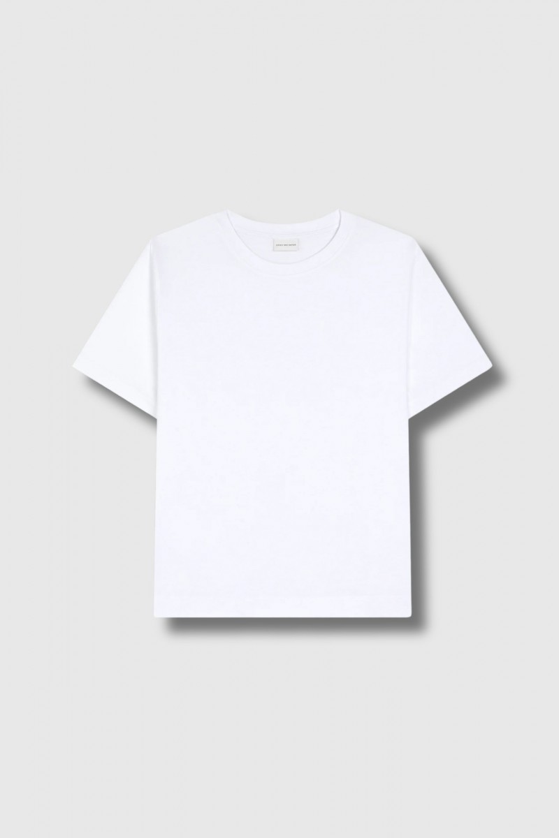 Le T-shirt Heydu blanc signé Dries Van Noten incarne l’essence du minimalisme sophistiqué. Confectionné en 100 % coton, il offre un confort naturel et une allure épurée. Sa coupe regular, ses manches courtes et son col rond en font un essentiel intemporel du vestiaire contemporain, pensé pour une élégance discrète et polyvalente.