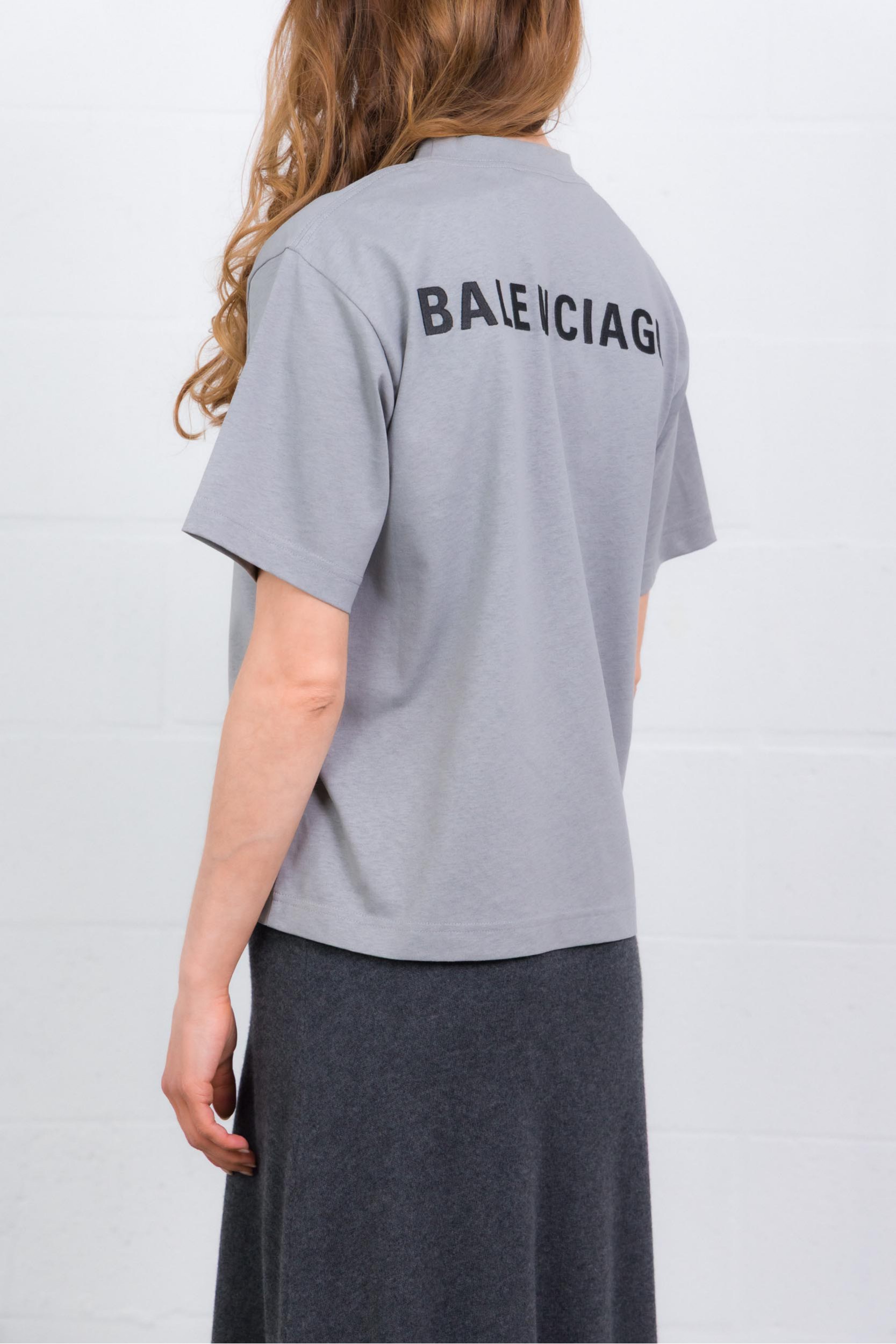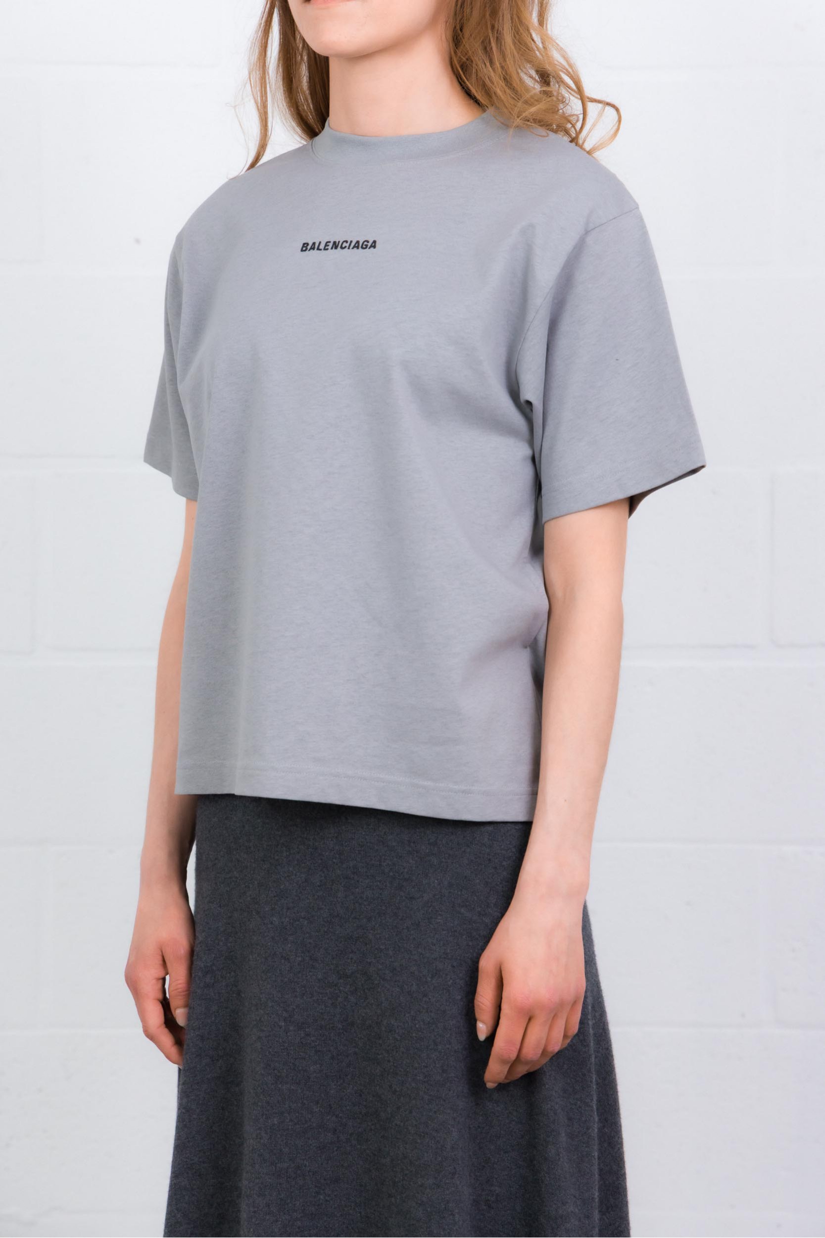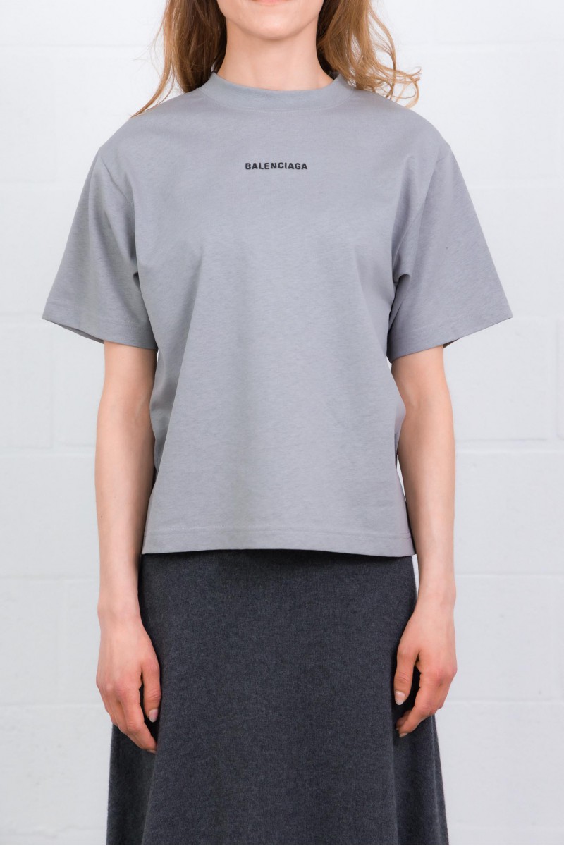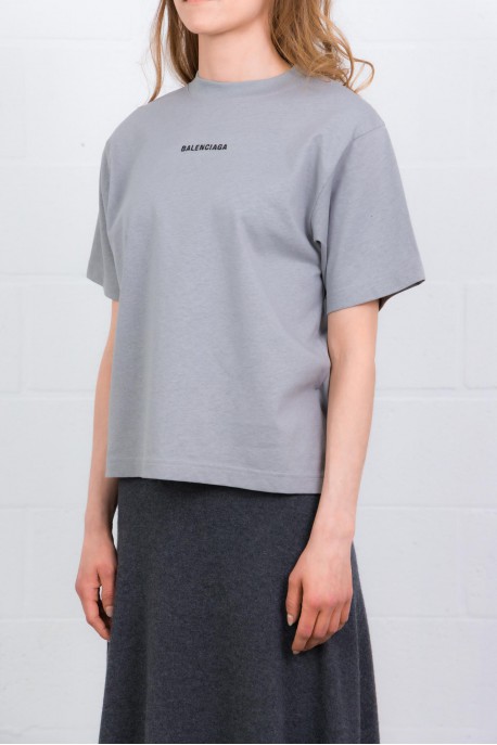 Ce T-shirt oversized gris est signé Balenciaga. Confectionné en jersey sec, il présente une coupe ample avec col rond et manches courtes. Le modèle est rehaussé d’un artwork Balenciaga brodé à l’avant et au dos, apportant une touche graphique et distinctive.