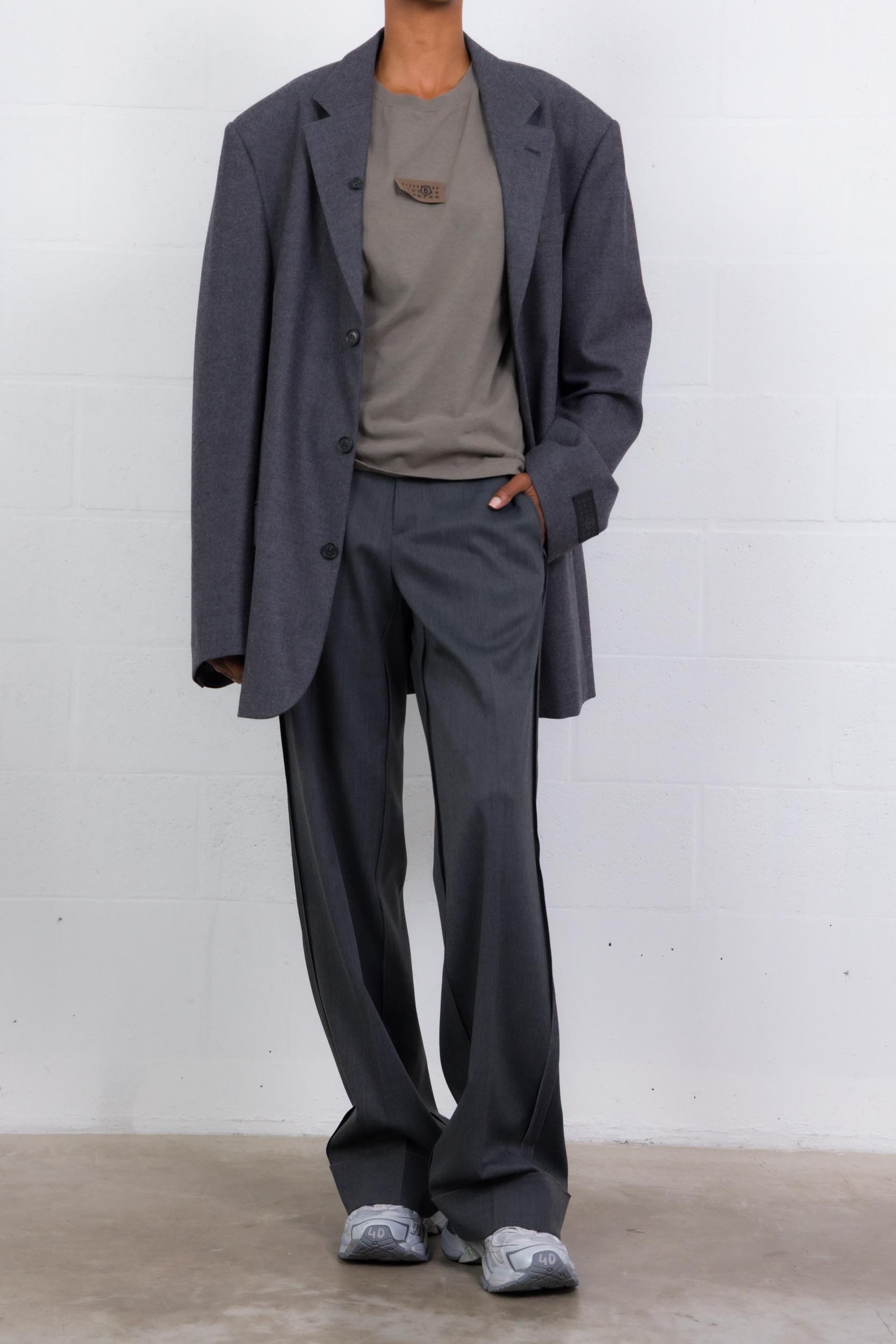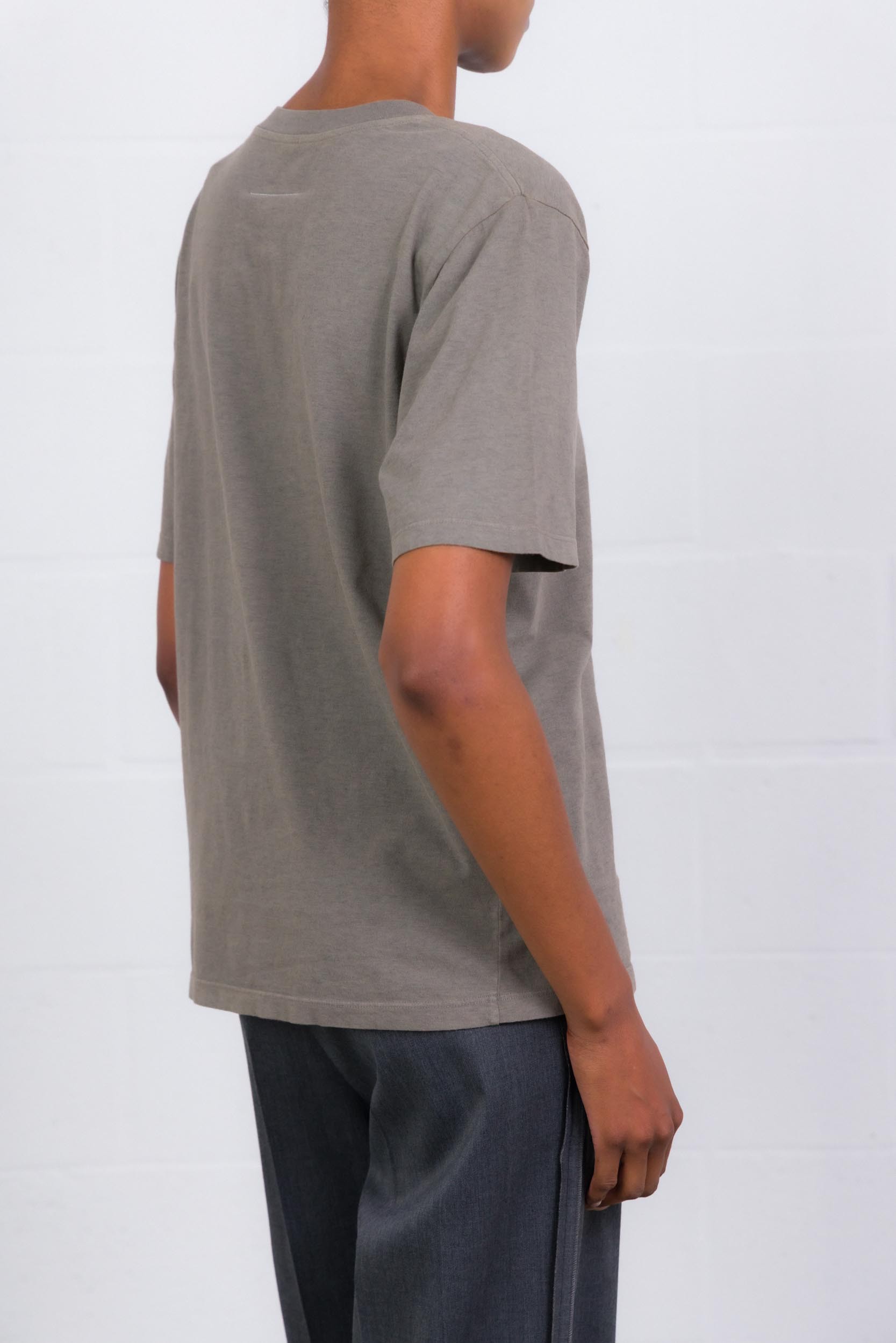 Ce t-shirt en coton taupe signé MM6 séduit par sa coupe ajustée et son design épuré. Il présente un col rond, des manches courtes et une étiquette logo discrète sur le devant, signature subtile de la Maison.