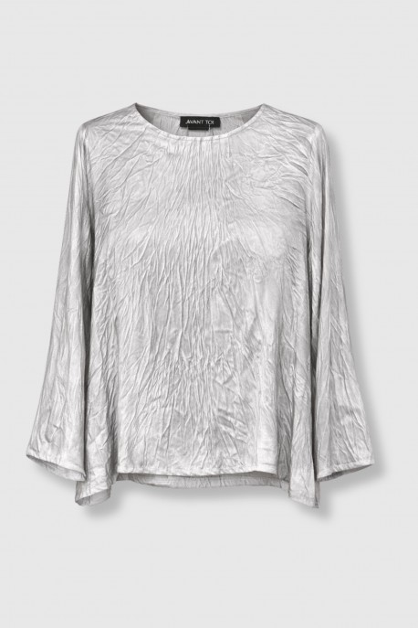 Top imprimé Flaubert en soie gris/argenté