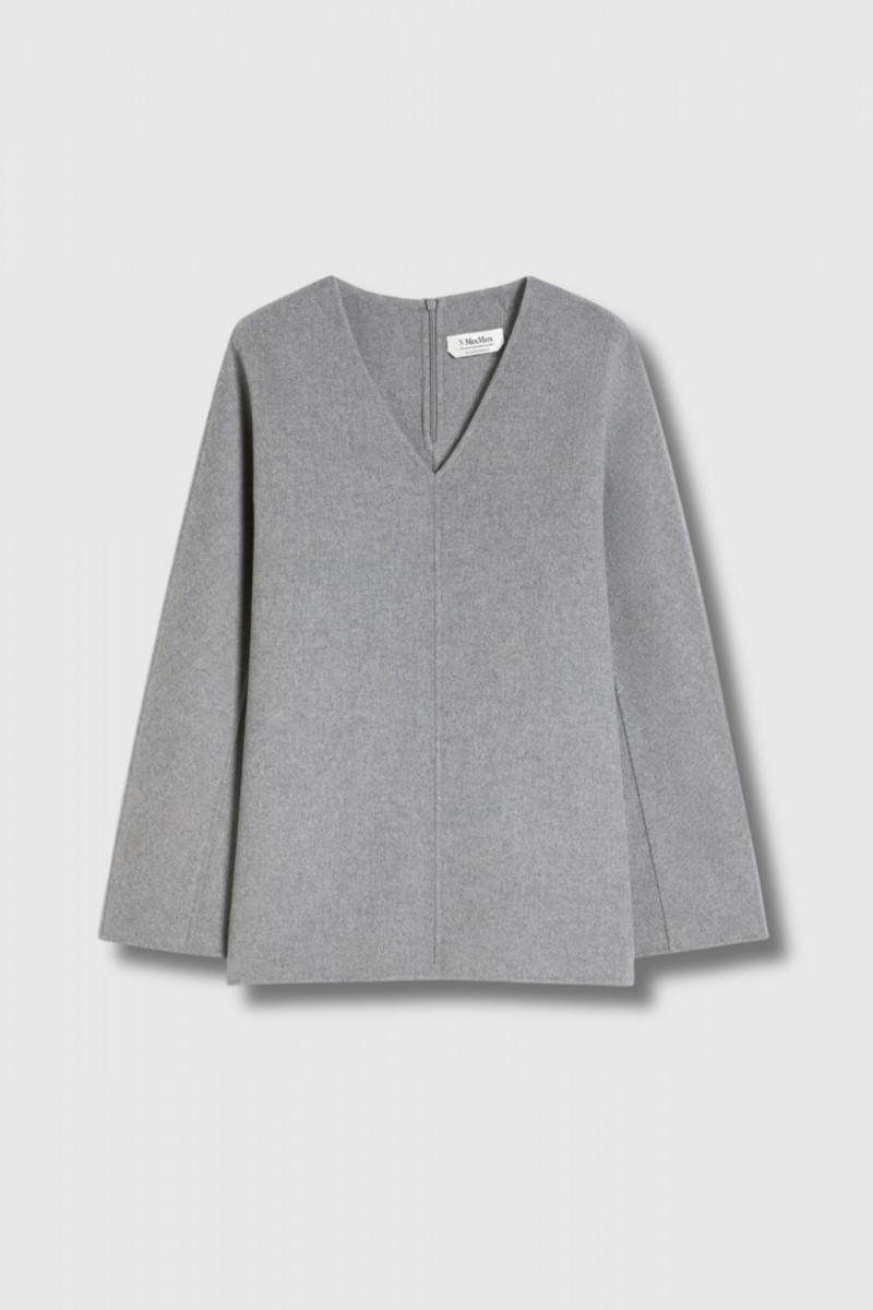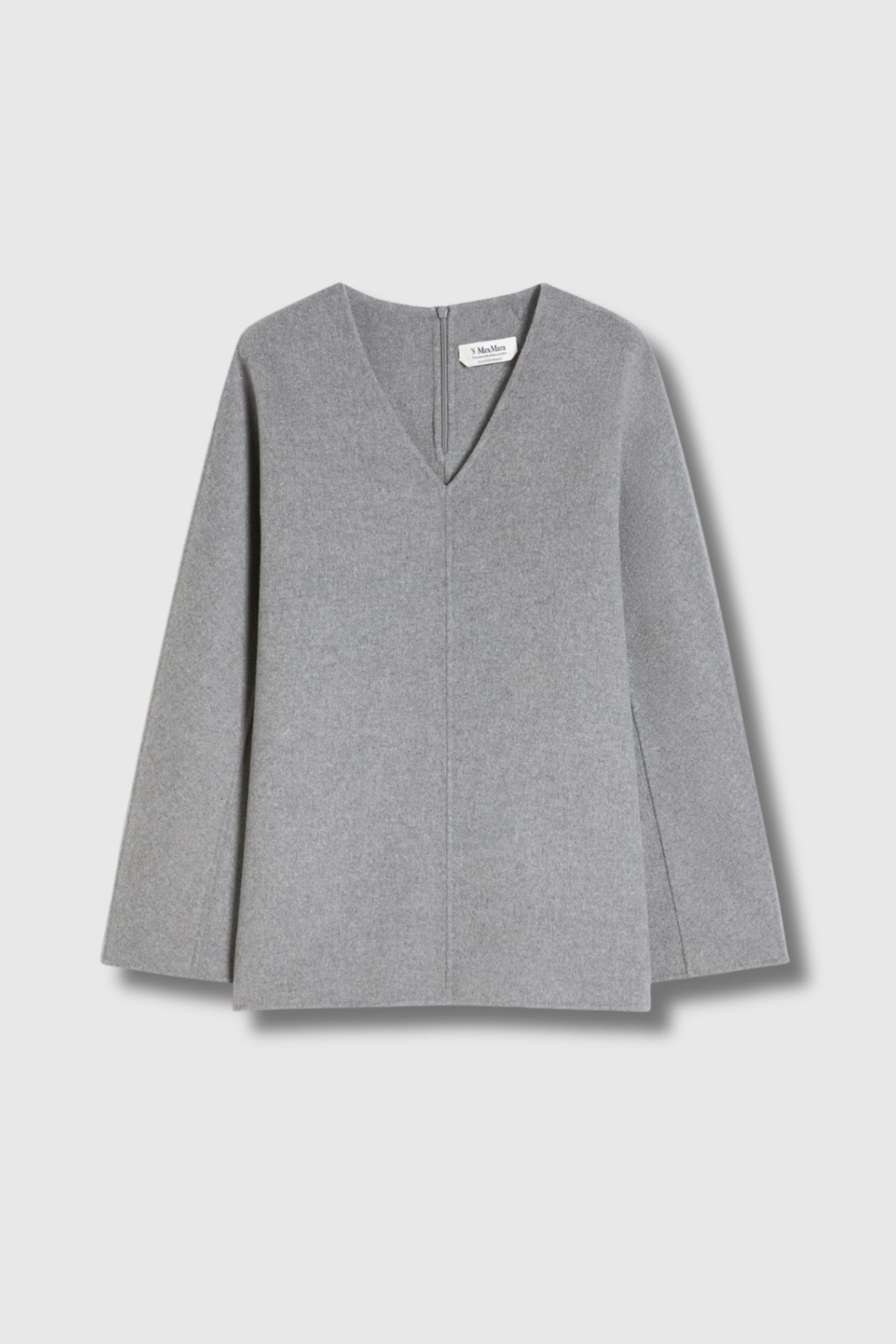 Ce top Riva en laine gris signé Max Mara séduit par son élégance fluide et son raffinement minimaliste. Confectionné en drap double de pure laine cousu main, il présente un volume souple et une coupe légèrement évasée qui accompagnent naturellement le mouvement. Son décolleté en V apporte une touche féminine, tandis que les manches longues kimono et les petites fentes latérales renforcent l’aisance et la modernité de la silhouette. Doté d’une fermeture zippée invisible au dos, de fentes arrondies sur les côtés et d’un bas subtilement asymétrique plus long à l’arrière, ce modèle non doublé incarne le savoir-faire et la sobriété élégante de la Maison Max Mara.