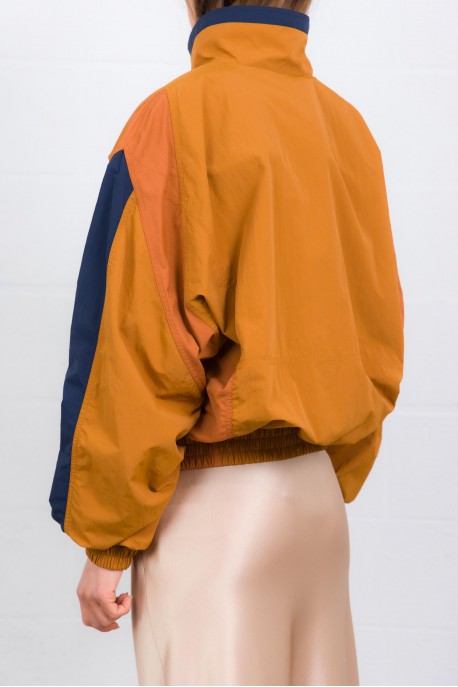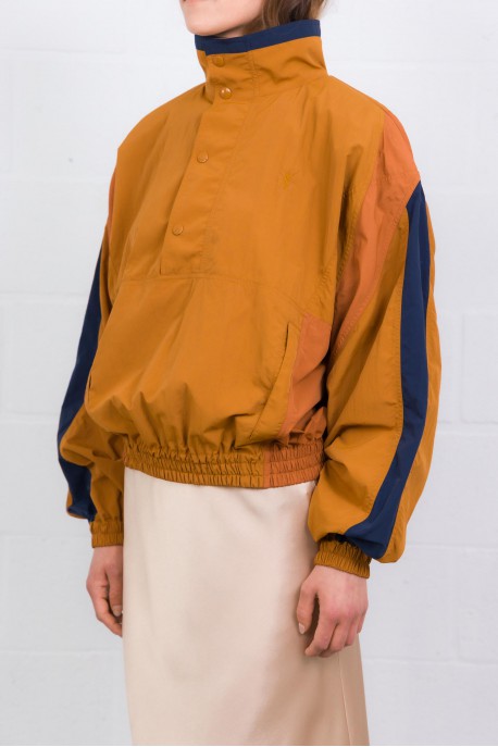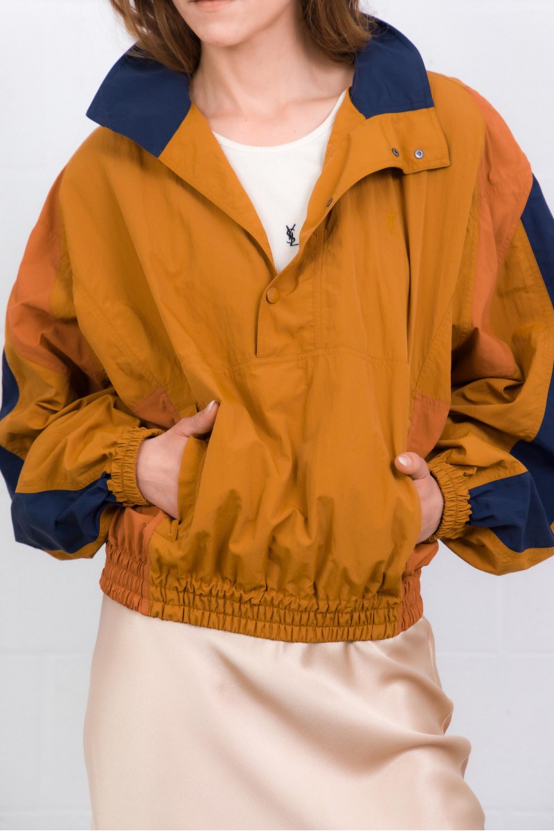Le blouson Cassandre en faille de nylon signé Saint Laurent incarne une vision contemporaine du coupe-vent. Confectionné en nylon recyclé color-block, il associe technicité et sophistication dans une silhouette audacieuse.