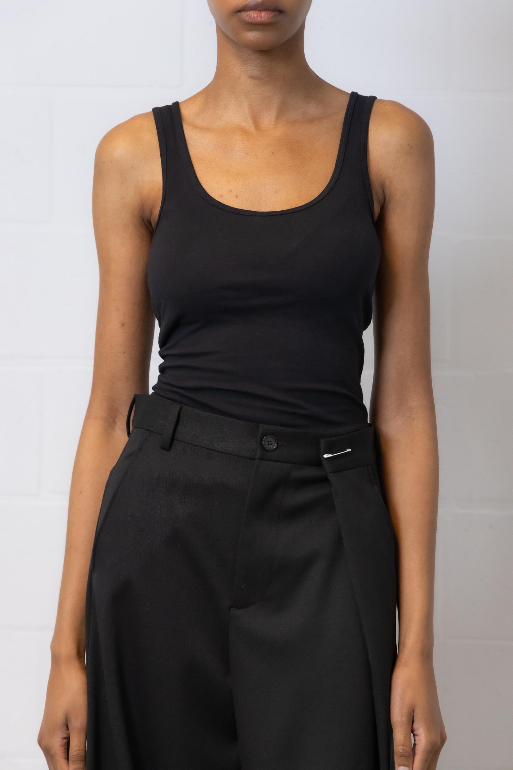 Ce débardeur en coton noir est signé James Perse. Confectionné à partir de coton supima stretch, il se distingue par sa coupe ajustée et son encolure dégagée.