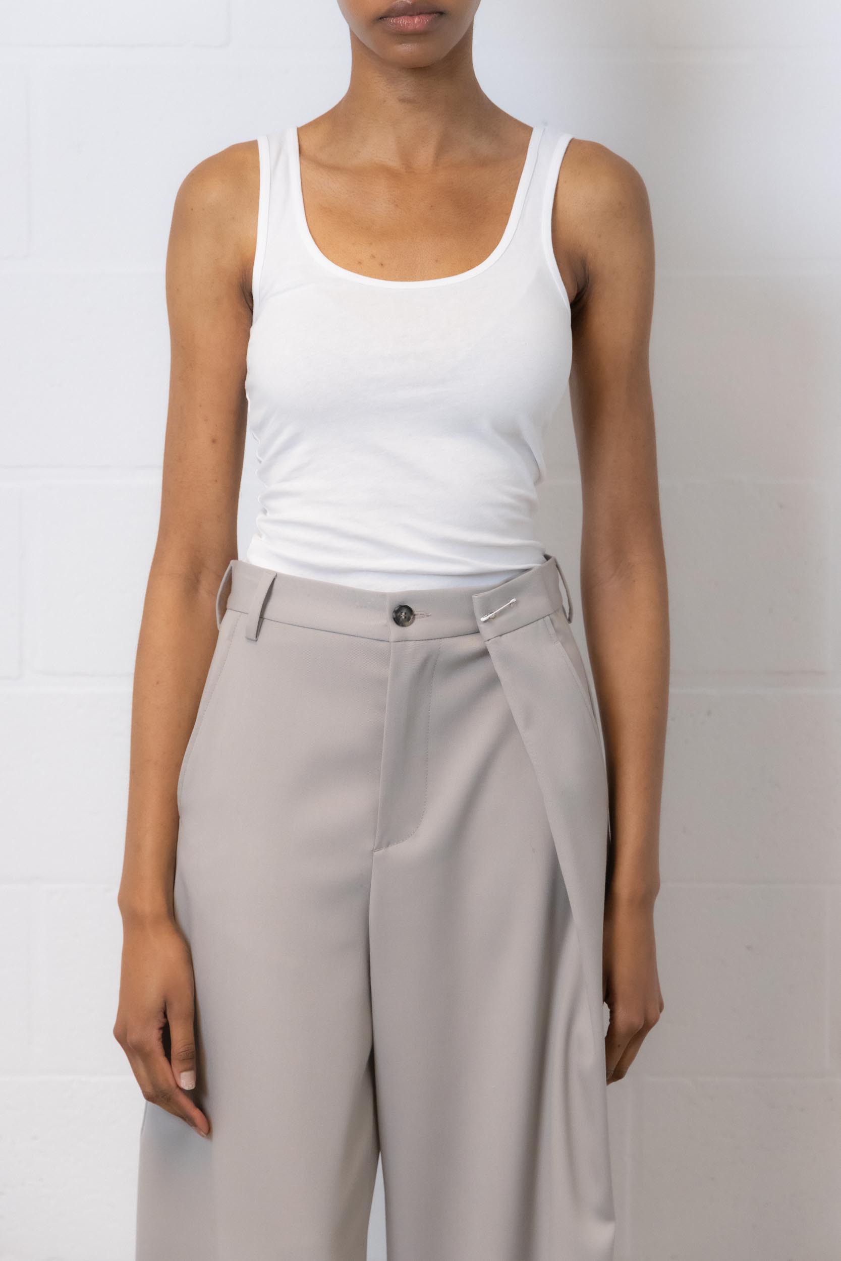 Ce débardeur en coton blanc est signé James Perse. Confectionné à partir de coton supima stretch, il se distingue par sa coupe ajustée et son encolure dégagée.
