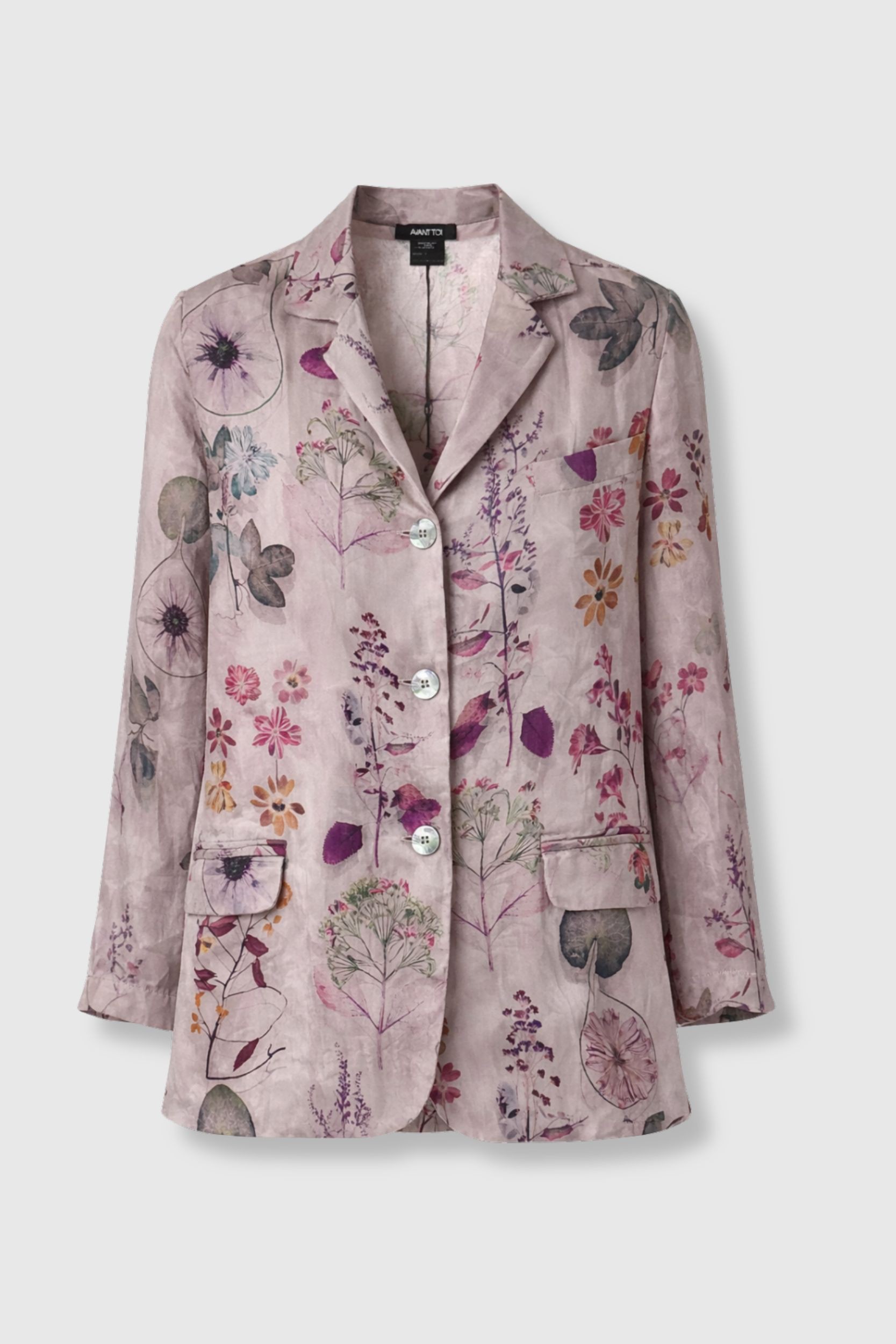 Cette veste imprimée fleurs en soie rose pâle signée Avant Toi incarne une élégance délicate et féminine. Confectionnée en soie légère, elle présente un col à revers classique et une fermeture simple par bouton, renforçant son style épuré. Les poches plaquées sur le devant ajoutent fonctionnalité et équilibre à sa coupe droite, tandis que l’imprimé floral subtil apporte fraîcheur et modernité. Une pièce versatile, parfaite pour sublimer une silhouette avec raffinement.