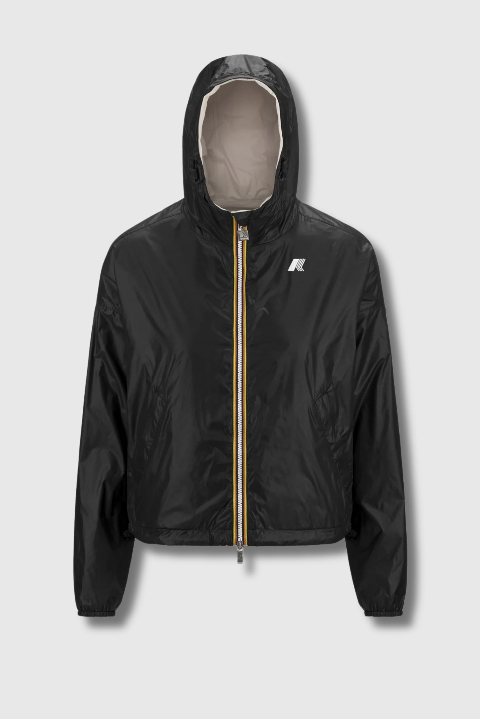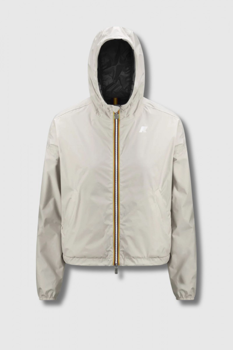 Cette veste Laurette Plus double réversible est signée K-Way. Ce modèle court et oversize est conçu en nylon recyclé, avec un côté imperméable, coupe-vent et respirant, et un revers en nylon lisse déperlant de couleur contrastée. Réversible et pliable, elle se distingue par ses coutures thermosoudées, sa capuche et sa taille ajustables par cordon, ainsi que ses poches zippées et à pression. Les poignets élastiqués et le patch logo en silicone blanc complètent ce modèle technique et polyvalent.
