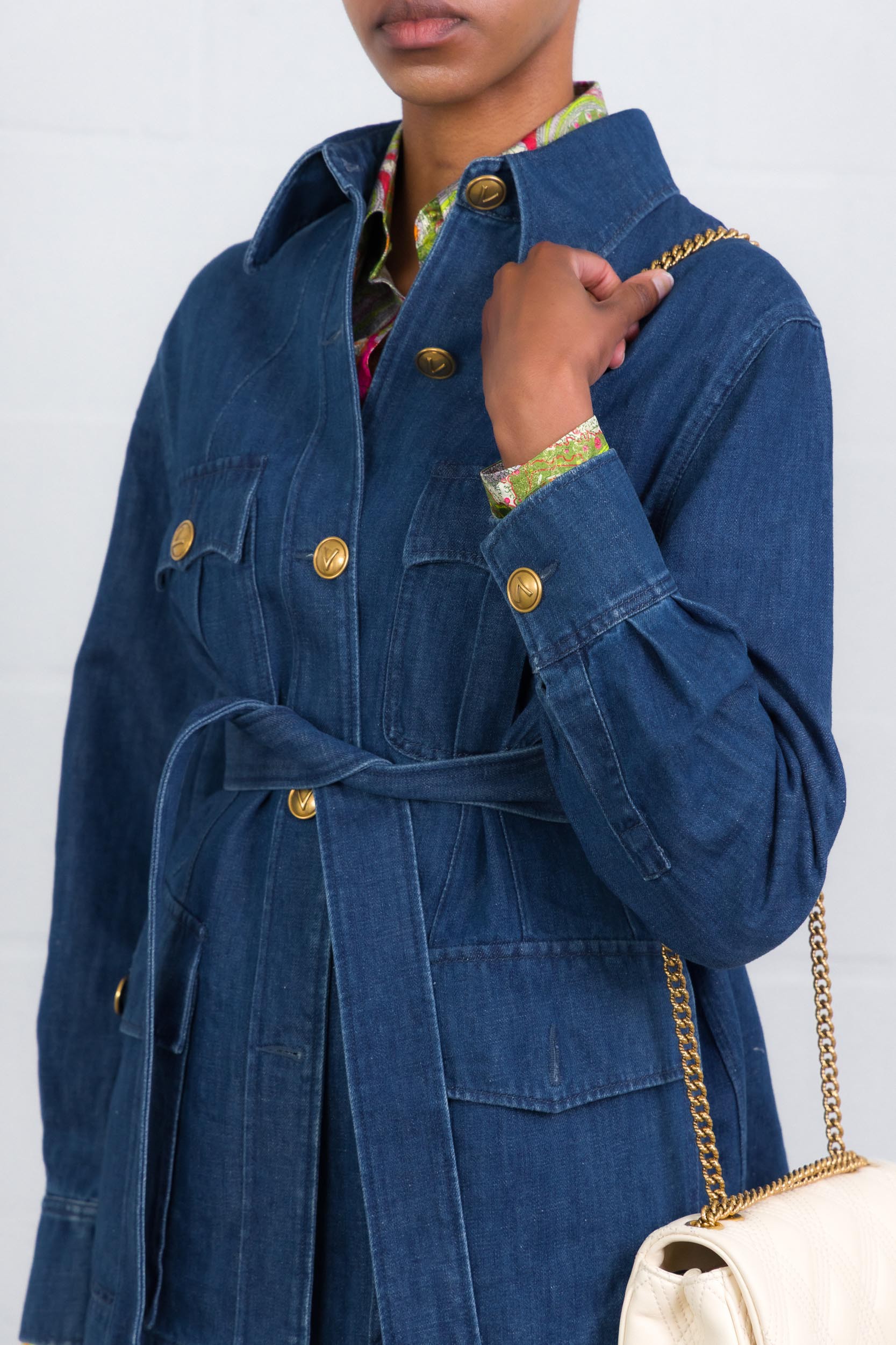 Veste en jeans ceinturée bleu