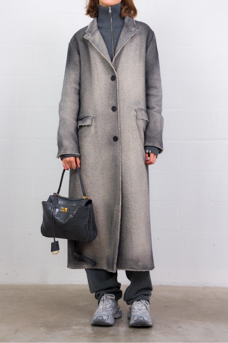 Ce manteau long Avant Toi incarne l’essence du savoir-faire artisanal italien à travers un travail de teinture dégradée subtil, allant du gris clair au gris anthracite. Réalisé dans un somptueux mélange de laine et cachemire, il séduit par sa texture douce et son tombé fluide.
