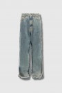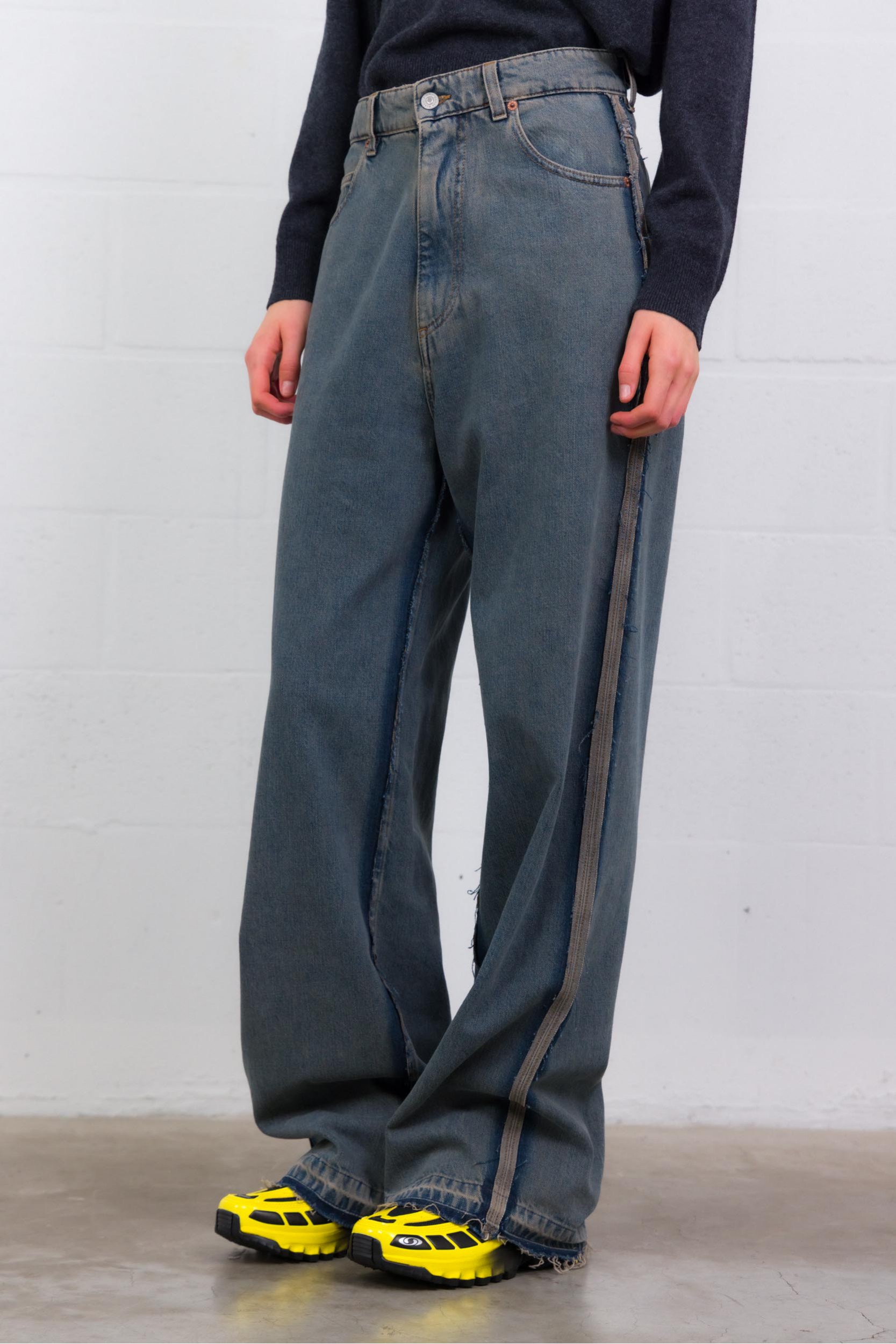 Ce pantalon signé MM6 Maison Margiela incarne l’élégance contemporaine avec un soupçon de décontraction maîtrisée. Confectionné en 100 % coton léger, il adopte une coupe droite versatile, soulignée par une construction classique cinq poches. Le tissu gris clair texturé, son tombé net et sa confection Made in Italy apportent une sophistication discrète à cette pièce essentielle du vestiaire moderne.