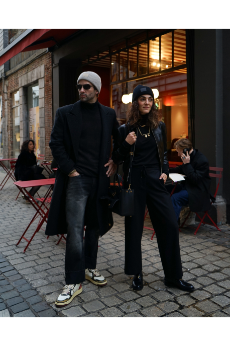 Le manteau Bennett de Nili Lotan est une pièce masculine élégante et intemporelle, confectionnée en laine brossée pour une texture douce et un confort thermique optimal. Sa coupe droite et structurée met en valeur la silhouette, tandis que le double boutonnage et les revers crantés ajoutent une touche classique et sophistiquée. Les épaules légèrement renforcées assurent un tombé net et impeccable. Un manteau hivernal raffiné, pensé pour accompagner un vestiaire moderne et soigné.