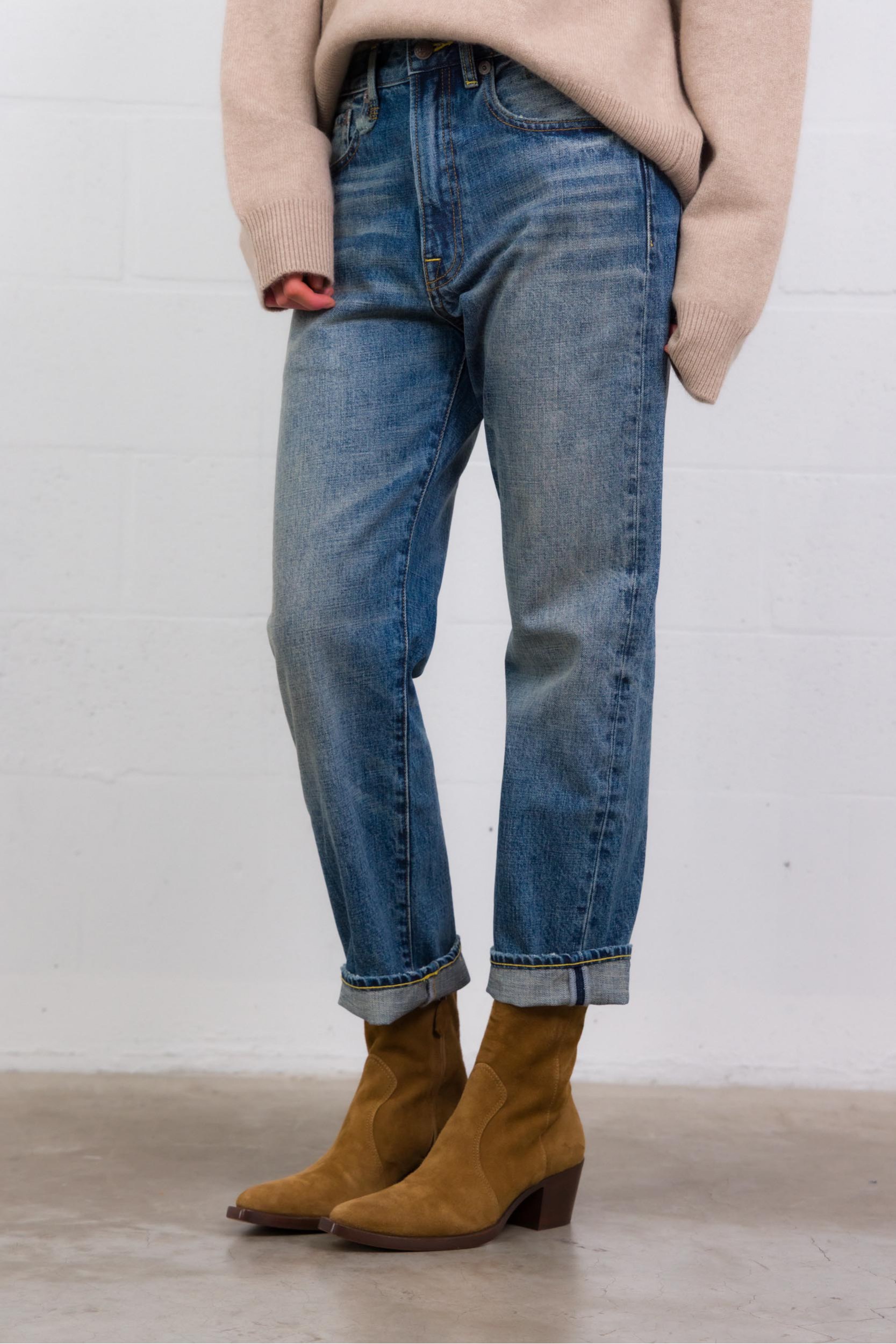 Le jean Boyfriend « Leo Blue » de la maison R13 incarne à la fois l’esprit décontracté et l’attention portée aux matériaux haut de gamme. Confectionné en denim 100 % coton japonais de lavage moyen, il offre une coupe mid-rise et une jambe droite qui se termine à la cheville — un équilibre parfait entre confort et style. Le coloris « Leo Blue » affiche une teinte bleu moyen subtilement délavée, agrémentée d’un effet léger usé pour une allure authentique et urbaine. Ce modèle s’impose comme une pièce clé du vestiaire contemporain, facile à associer avec des boots ou des sneakers pour un look affirmé.