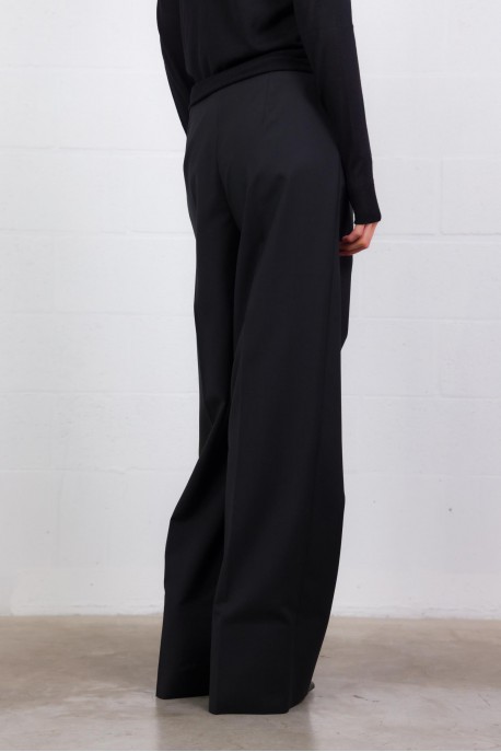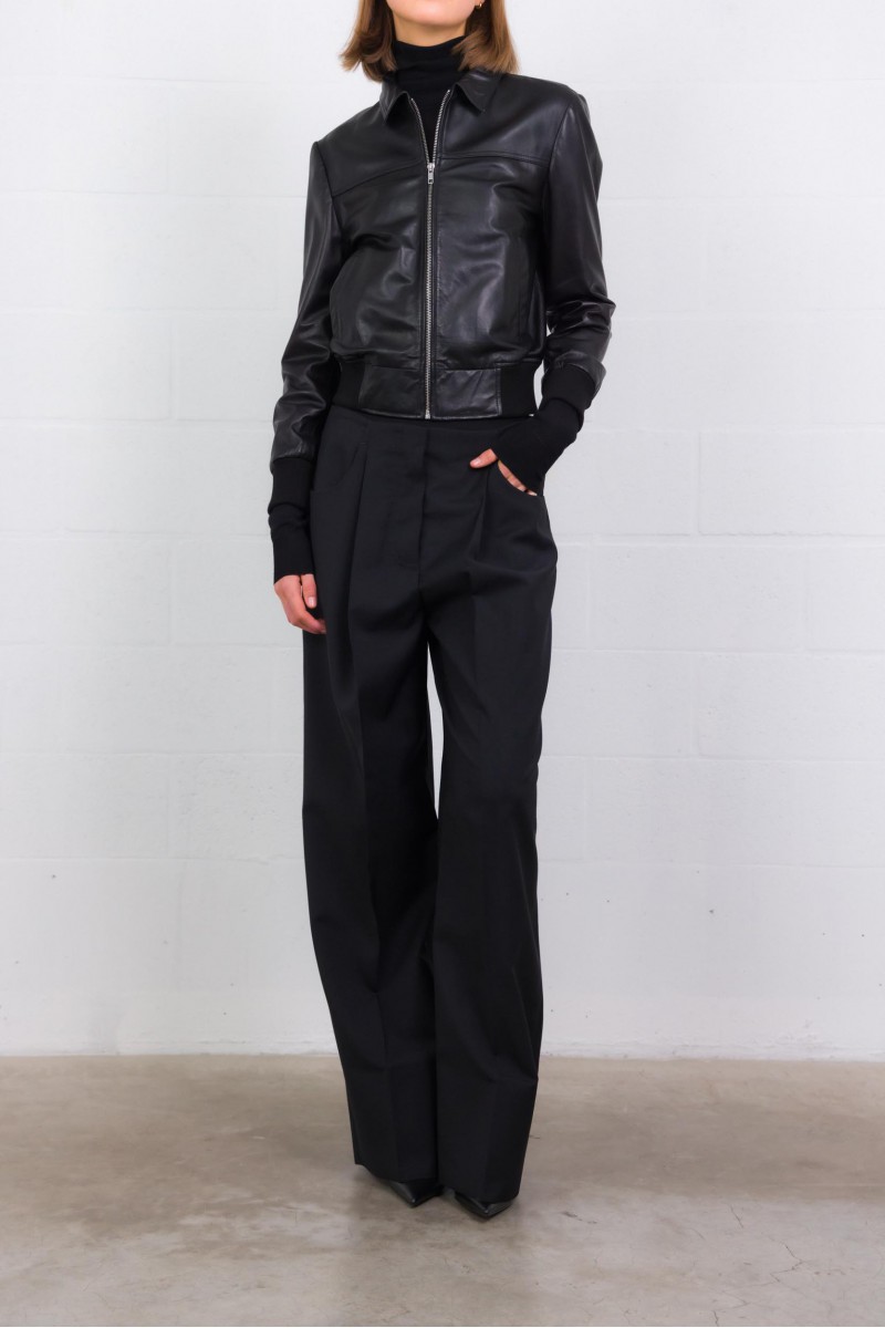 Ce pantalon Fendi incarne le raffinement italien à travers une coupe large et fluide, dans un ton noir iconique. Conçu en mélange haut de gamme de laine et mohair, il se distingue par ses plis marqués à l’avant, ses poches latérales pratiques et sa fermeture zippée dissimulée pour une finition épurée. La taille mi-haute structure la silhouette et garantit un tombé élégant. Une pièce forte, idéale pour moderniser vos looks chic ou habillés dans une nuance tendance.