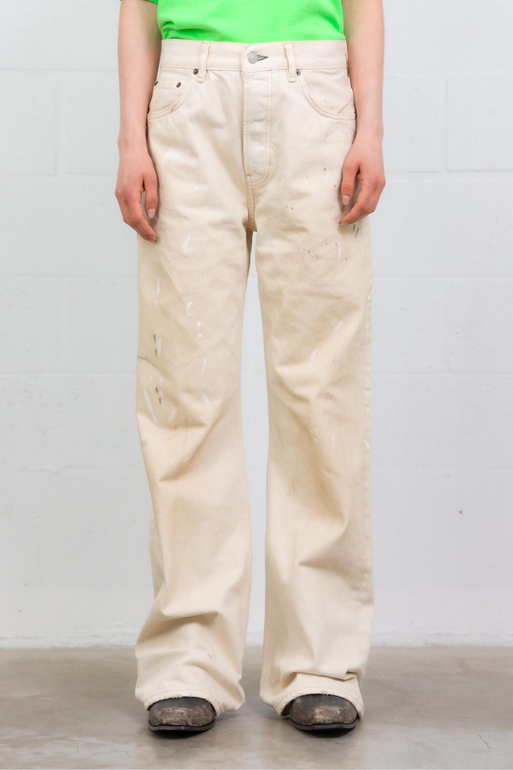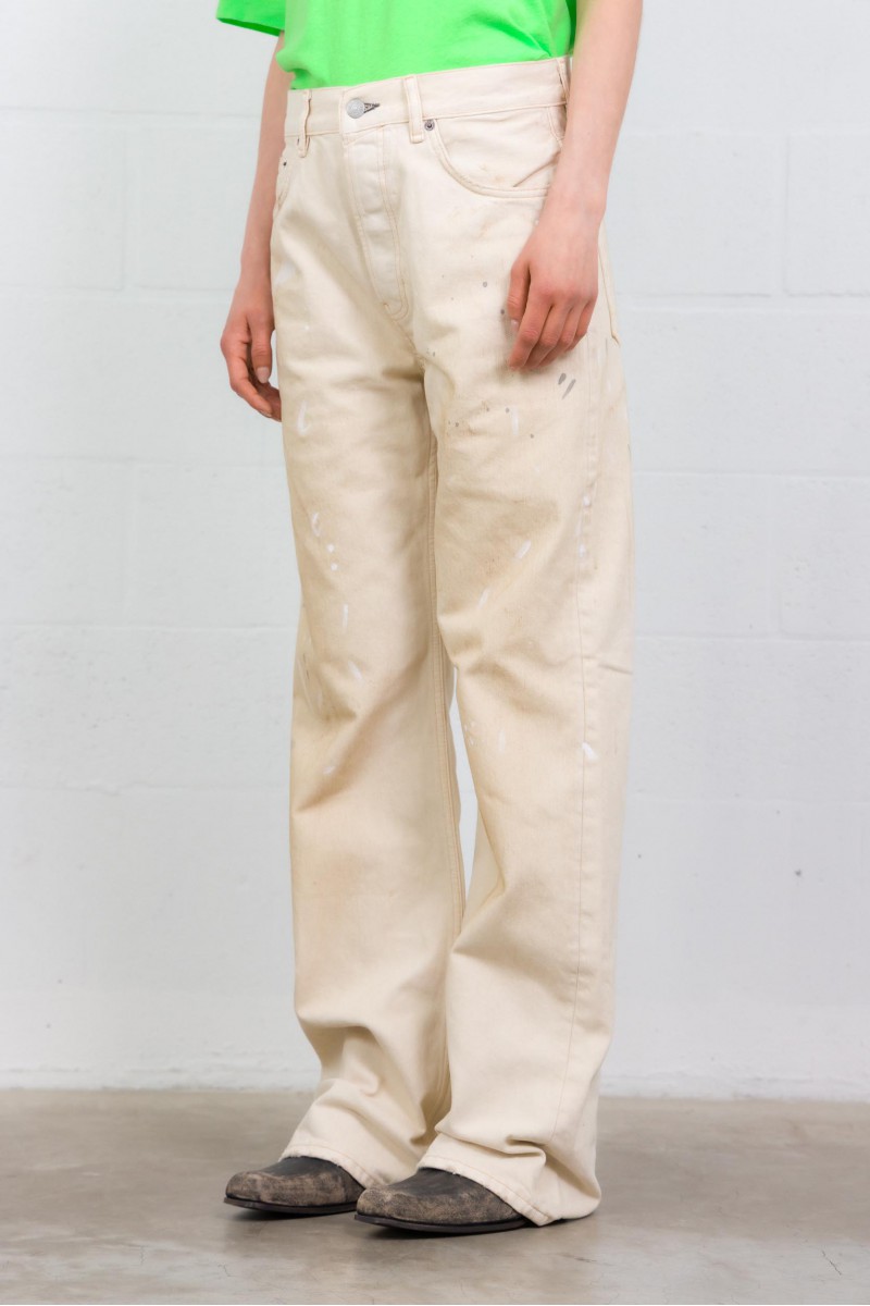 Ce jean 2021F Trafalgar signé Acne Studios incarne l’esthétique minimaliste et contemporaine de la maison suédoise. Confectionné en denim blanc, il présente une coupe droite légèrement ample qui offre une silhouette moderne et structurée.