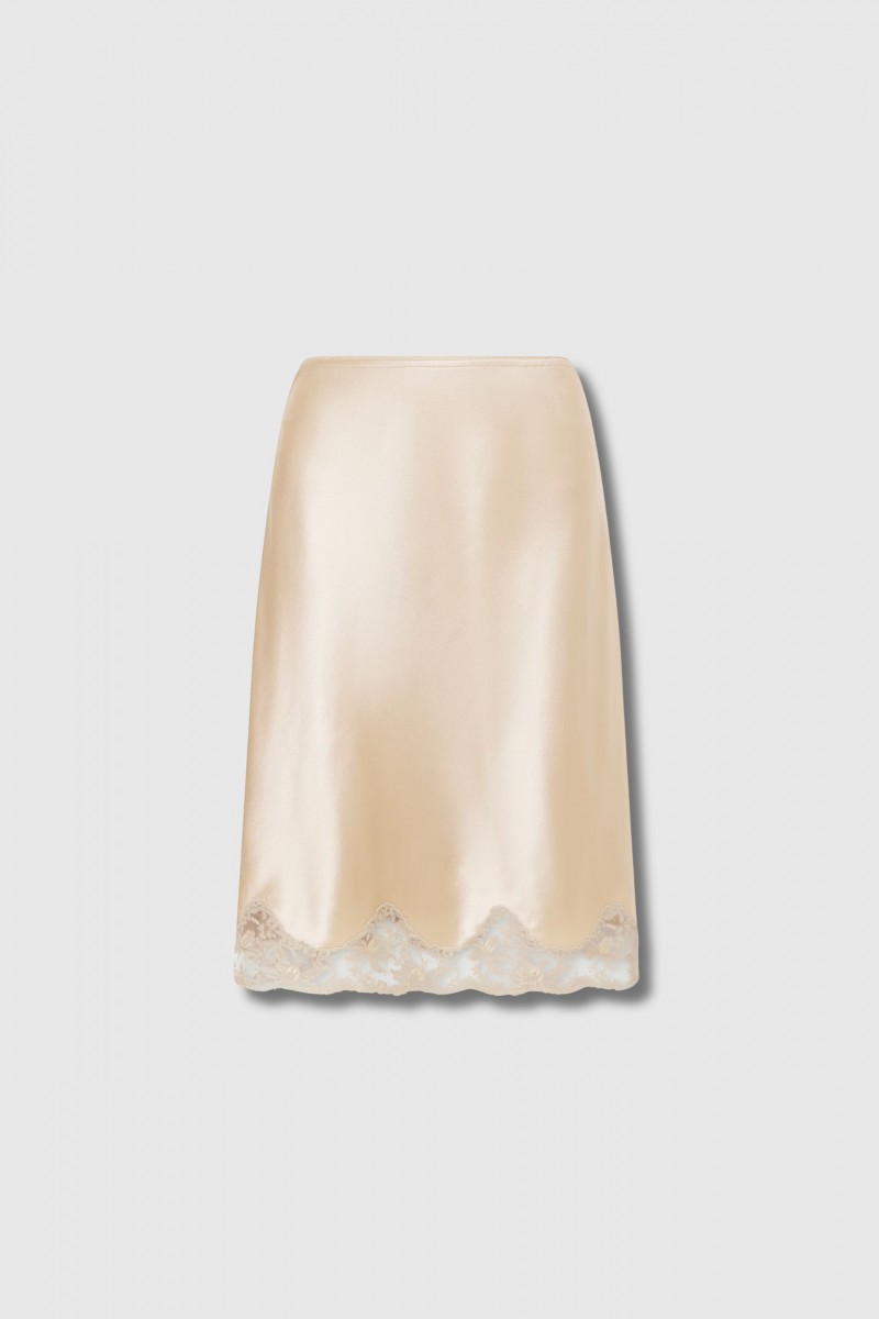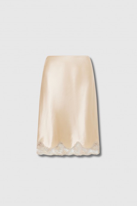 Jupe satin de soie et dentelle beige doré