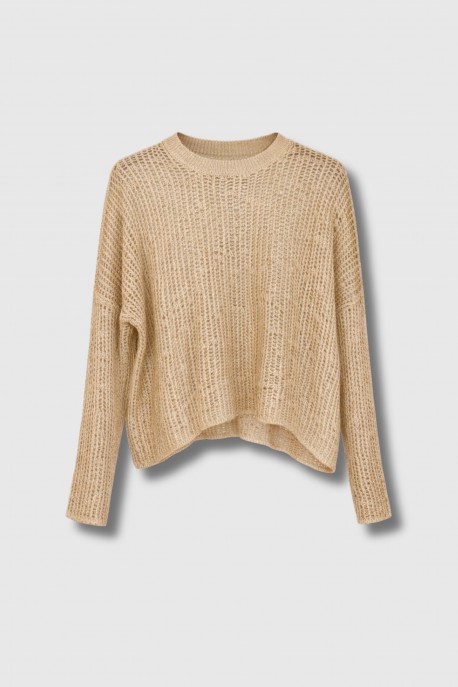 Sa coupe légèrement ample, ses épaules tombantes et son tombé fluide en font une pièce facile à porter, entre décontraction et allure travaillée. La transparence légère de la maille joue sur les superpositions et souligne son caractère contemporain.