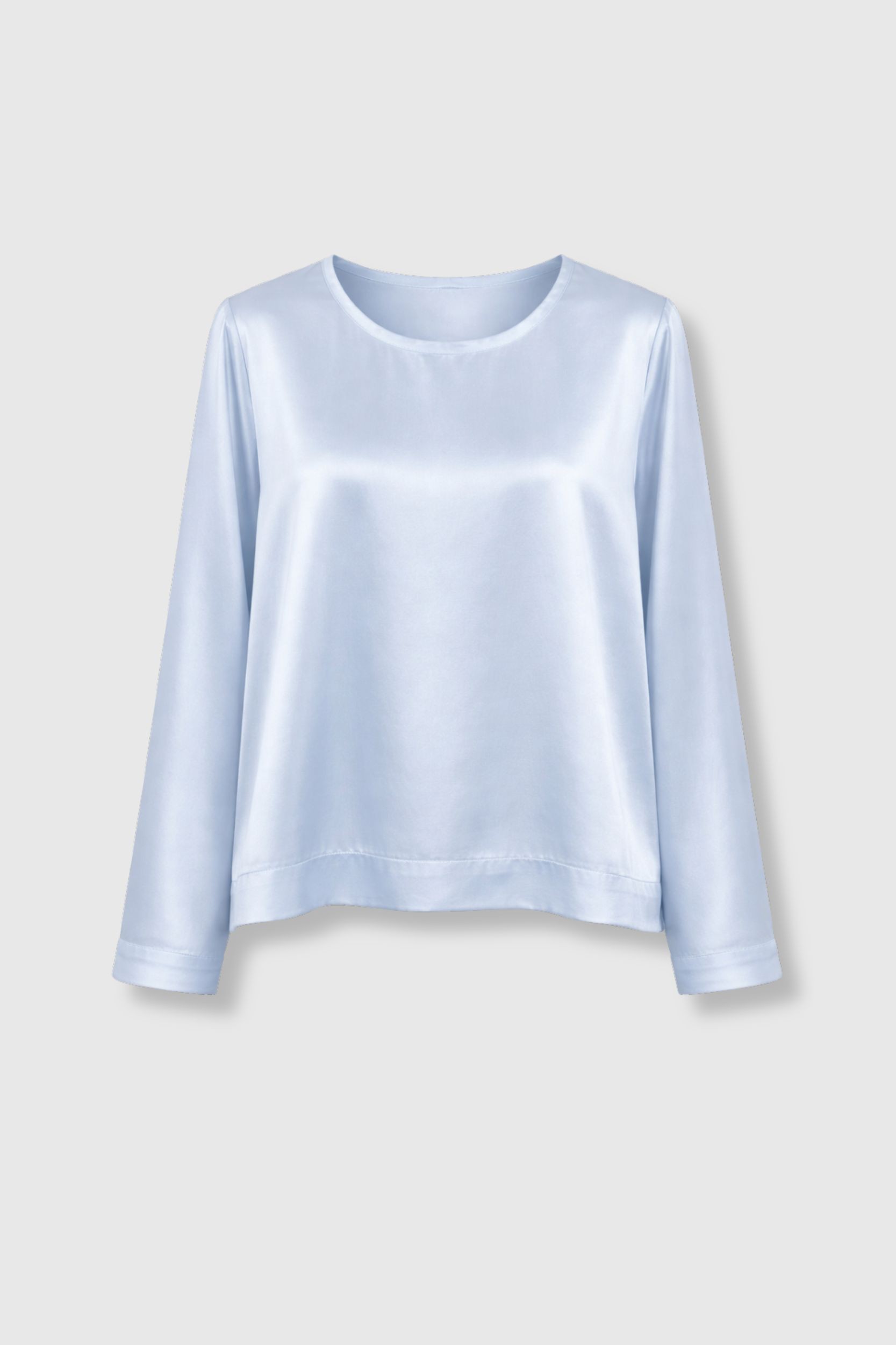 Sa coupe droite légèrement ample, associée à une encolure ronde épurée et des manches longues, en fait une pièce facile à porter au quotidien comme en silhouette plus habillée. Sa teinte bleu ciel apporte une touche de douceur et de modernité au vestiaire.