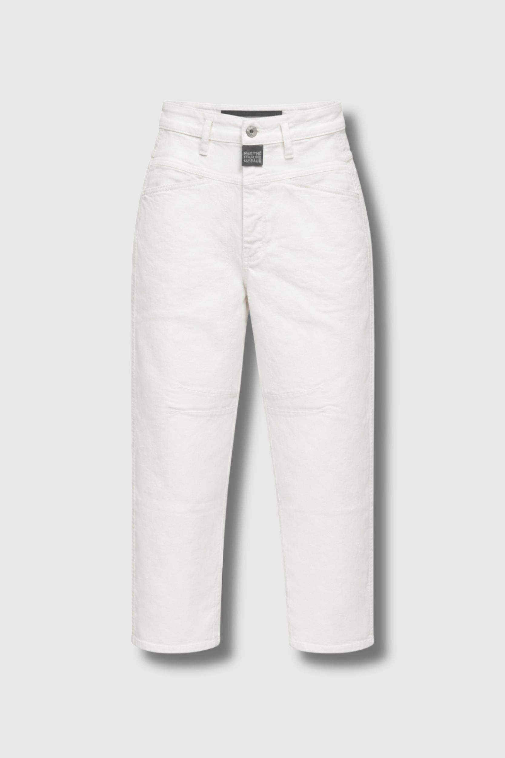 Décliné dans une version lumineuse, le jeans Brand X signé Marithé + François Girbaud apporte une lecture contemporaine et épurée du denim. Confectionné en toile teintée en pièce (garment-dyed), il révèle un blanc subtilement nuancé, loin d’un rendu uniforme, qui donne profondeur et modernité à la matière.