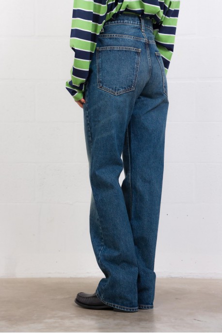 Ce jeans Mitchell Simon est signé Nili Lotan. Affirmez un style authentique avec ce jean taille mi-haute à coupe droite et décontractée, sublimé par un denim japonais épais au tissage croisé, sans élasticité, qui offre une allure résolument premium. Ses finitions emblématiques cinq poches, braguette zippée, bouton rivet et passants de ceinture signent un esprit intemporel.